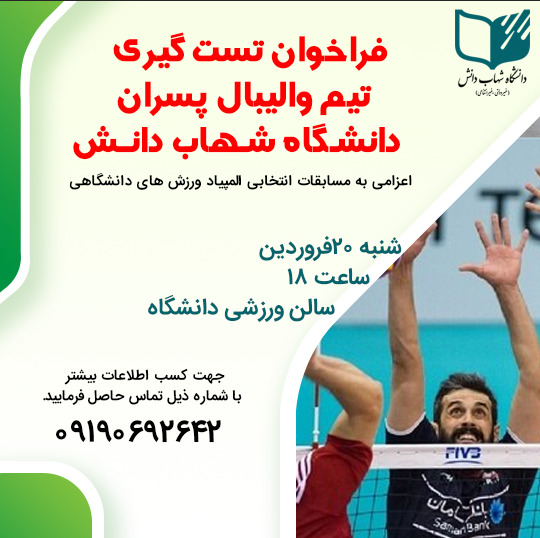 فراخوان تست گیری تیم والیبال پسران دانشگاه شهاب دانش