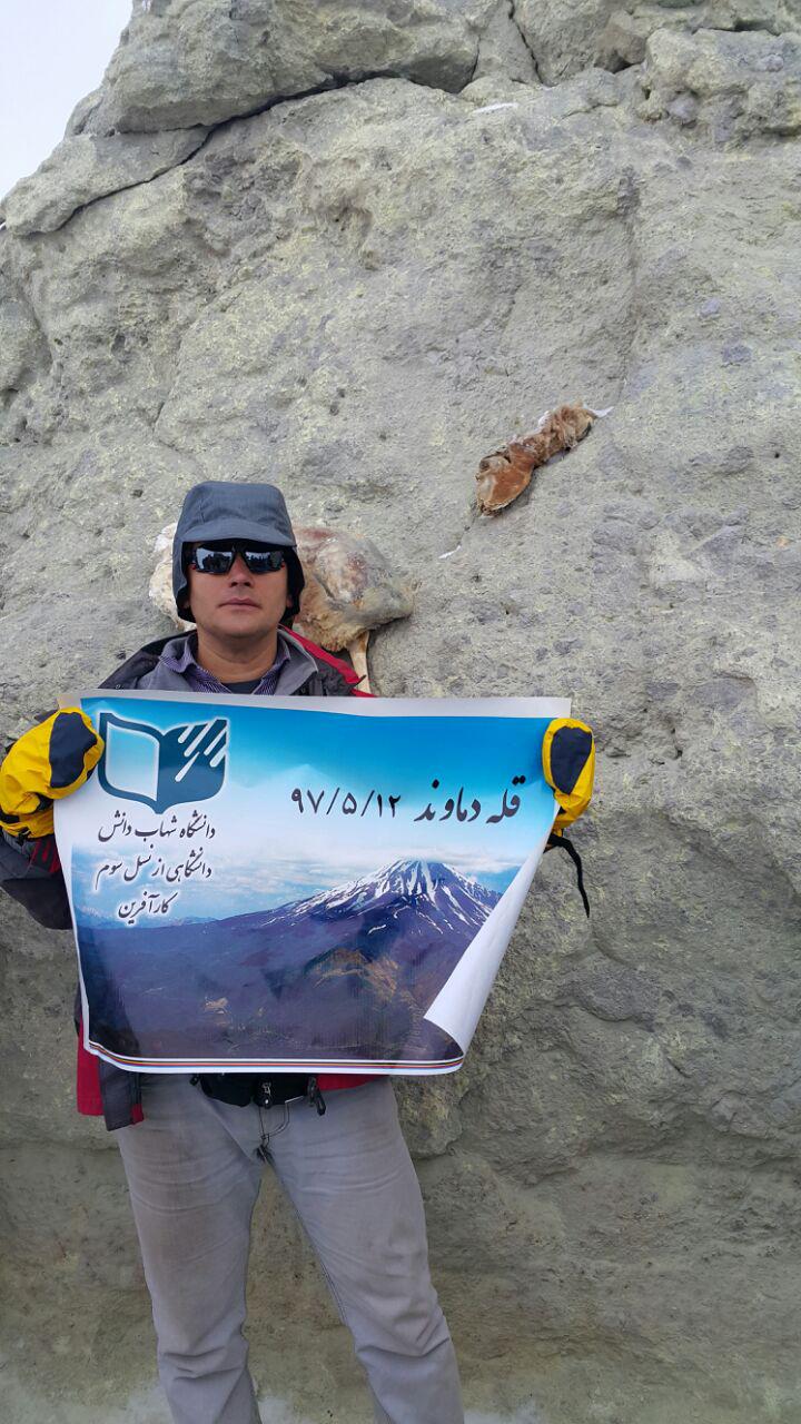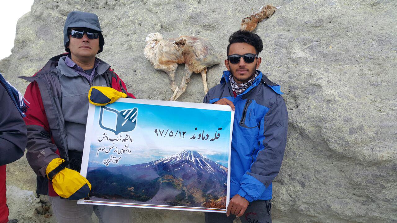 اهتزاز پرچم شهاب دانش بر فراز قله دماوند
