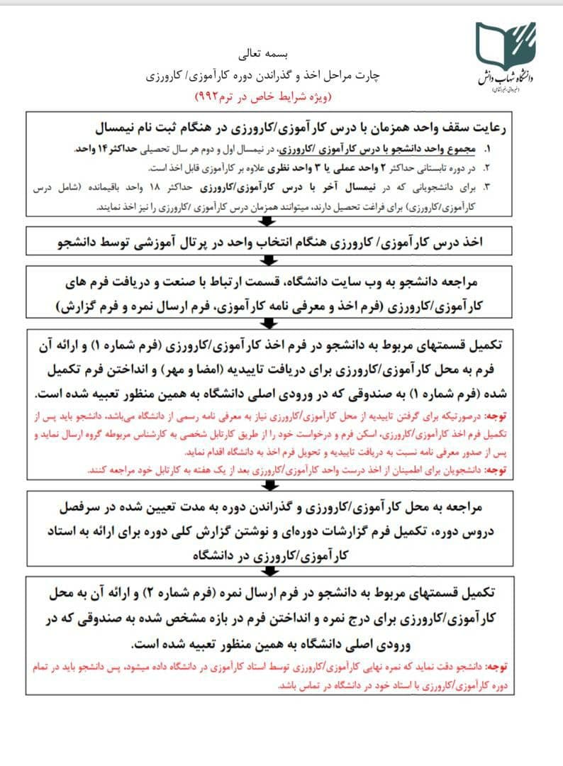 • چارت مراحل اخذ و گذراندن دوره کارآموزی/کارورزی (ویژه شرایط خاص در ترم 992)