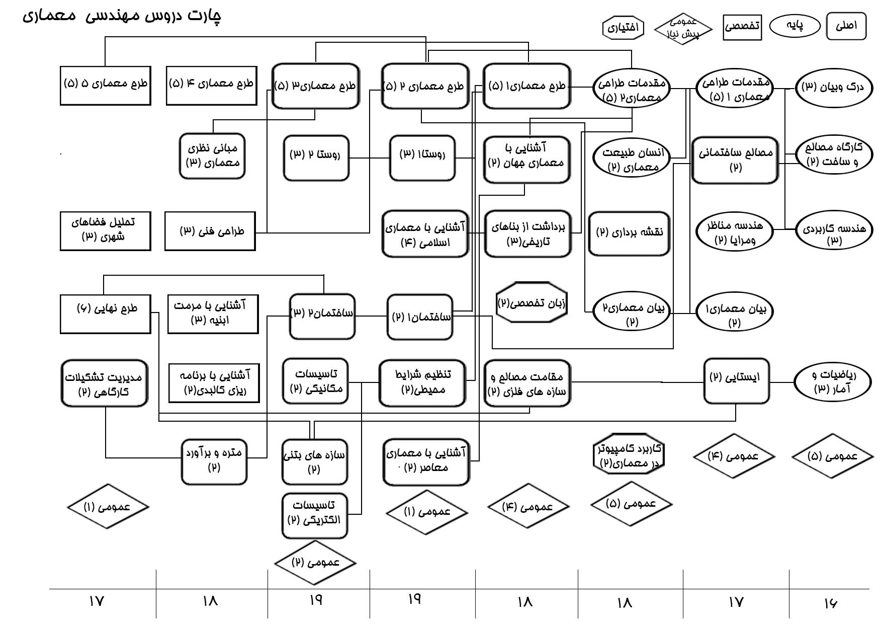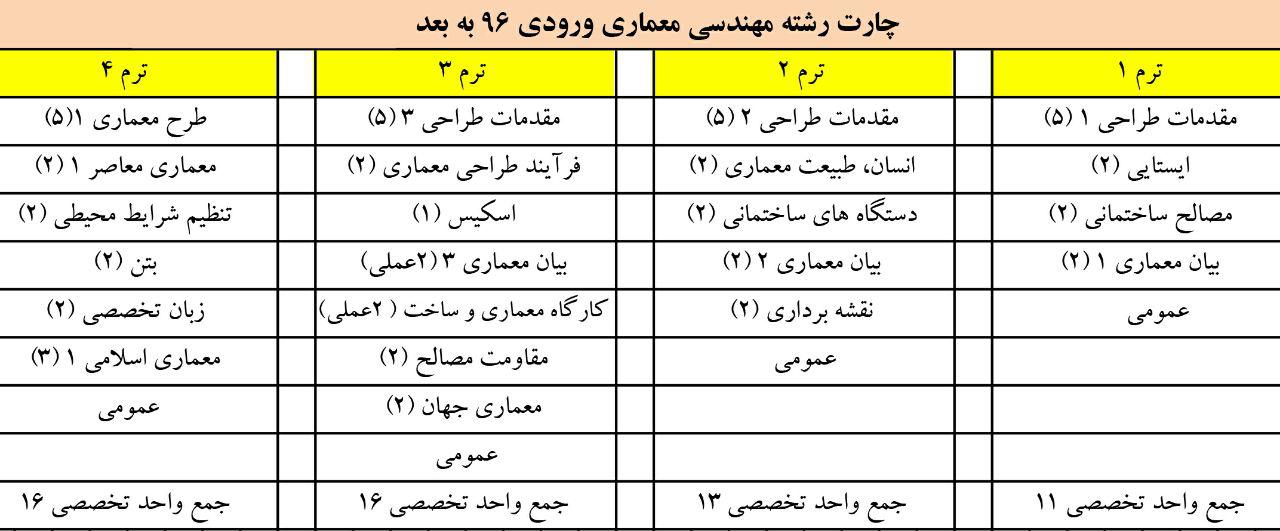 چارت رشتهی مهندسی معماری برای دانشجویان ورودی ۹۶ به بعد