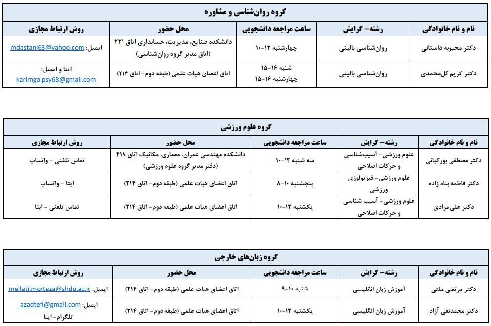 جدول زمانبندی حضور اساتید
